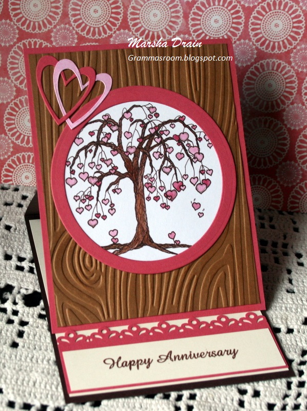 Last year I started making duplicate cards. Up to that point, I tried to make each card different for valentines and anniversaries going to my children. But now with all six children married, I decided it was time that they all get the same design for their anniversary cards. So here is the card for this year: